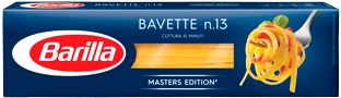 Новая улучшенная форма Баветте для идеального аль денте и превосходного вкуса пасты. Баветте исключительно хороши даже при заправке небольшим количеством сливочного масла, однако идеально сочетаются и с соусом «Песто Дженовезе». Оригинальное и одновременно быстрое в приготовлении блюдо – паста баветте с соусом «Арраббьята» и белой фасолью. Приверженцам традиционных рецептов придётся по вкусу паста с соусом....