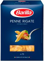 Макаронные изделия Penne Rigate производятся в виде полых трубочек со срезанными краями и считаются одной из самых популярных форм итальянской пасты. Продукт торговой марки Barilla предназначен для приготовления блюд с мясом, овощами и сыром. Также готовые макароны могут подаваться вместе с различными соусами на основе сливок или оливкового масла.