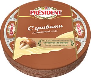 Читать все статьиСыр плавленый КРУГ «С ГРИБАМИ» Президент 140г 45% 1*15